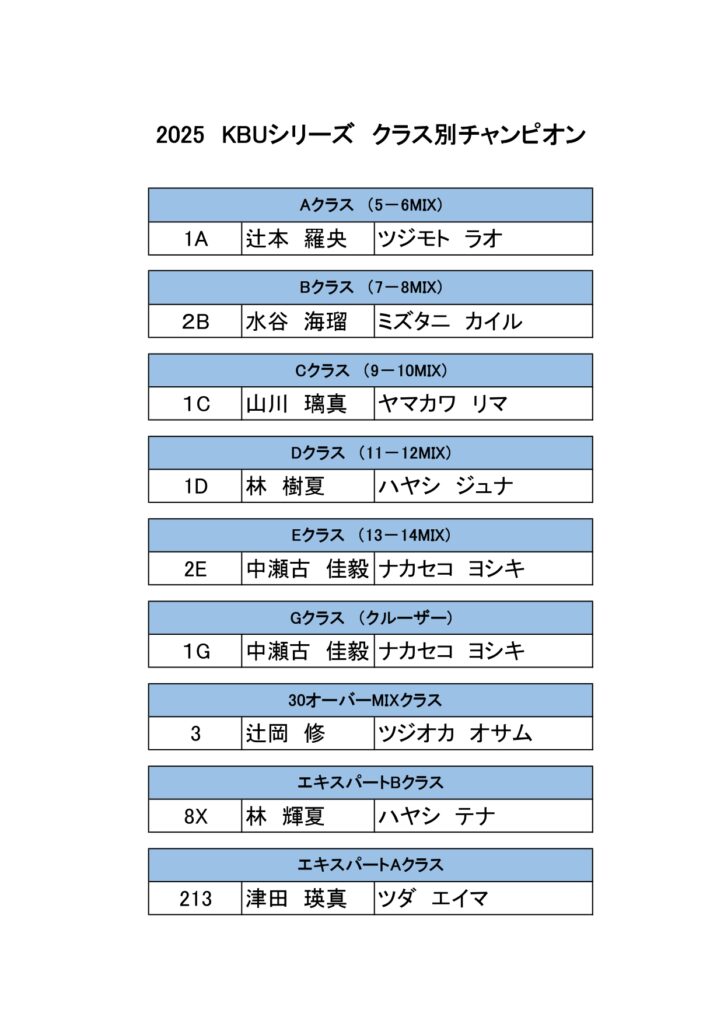 2025 KBUシリーズ クラス別チャンピオン決定しました!